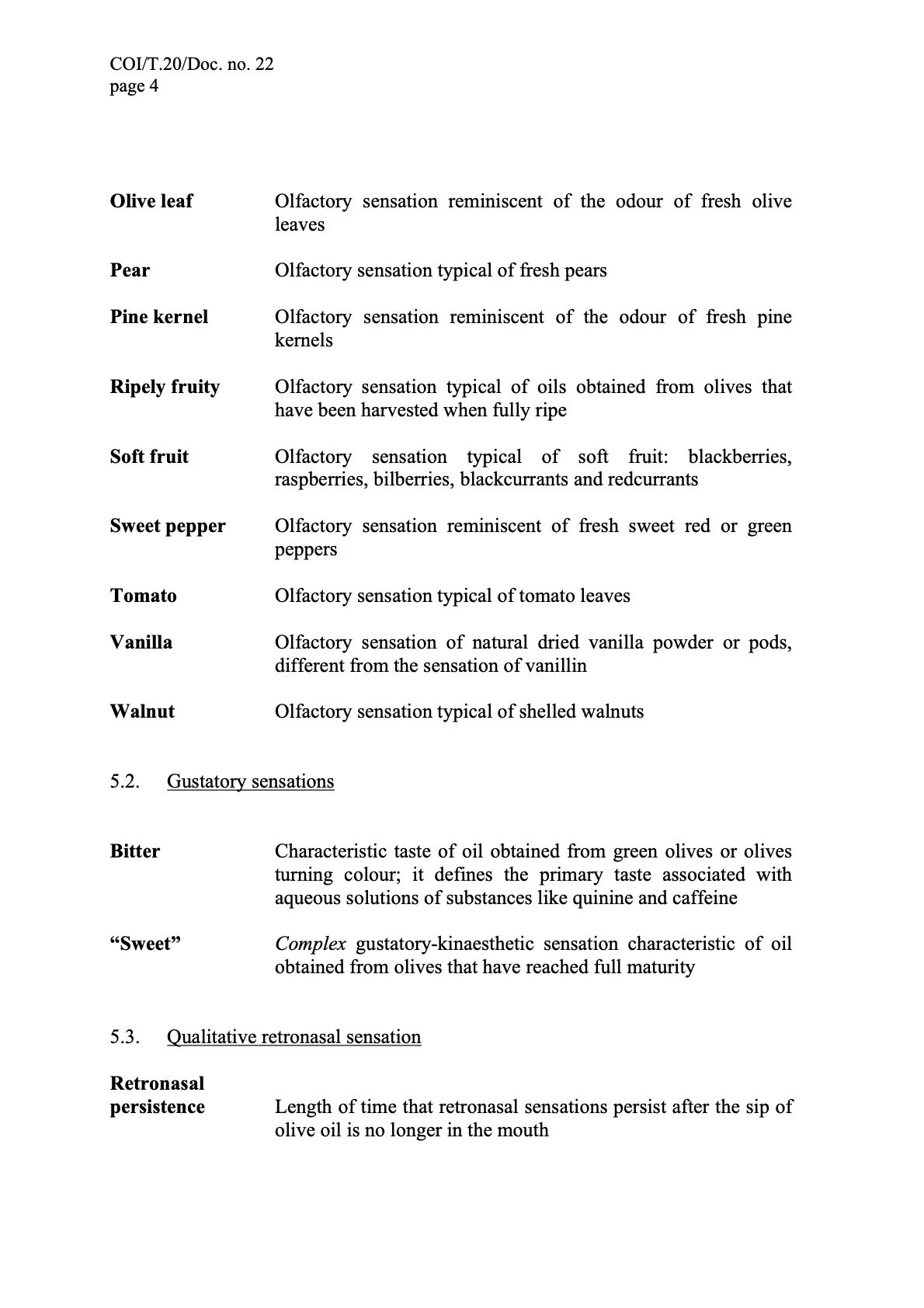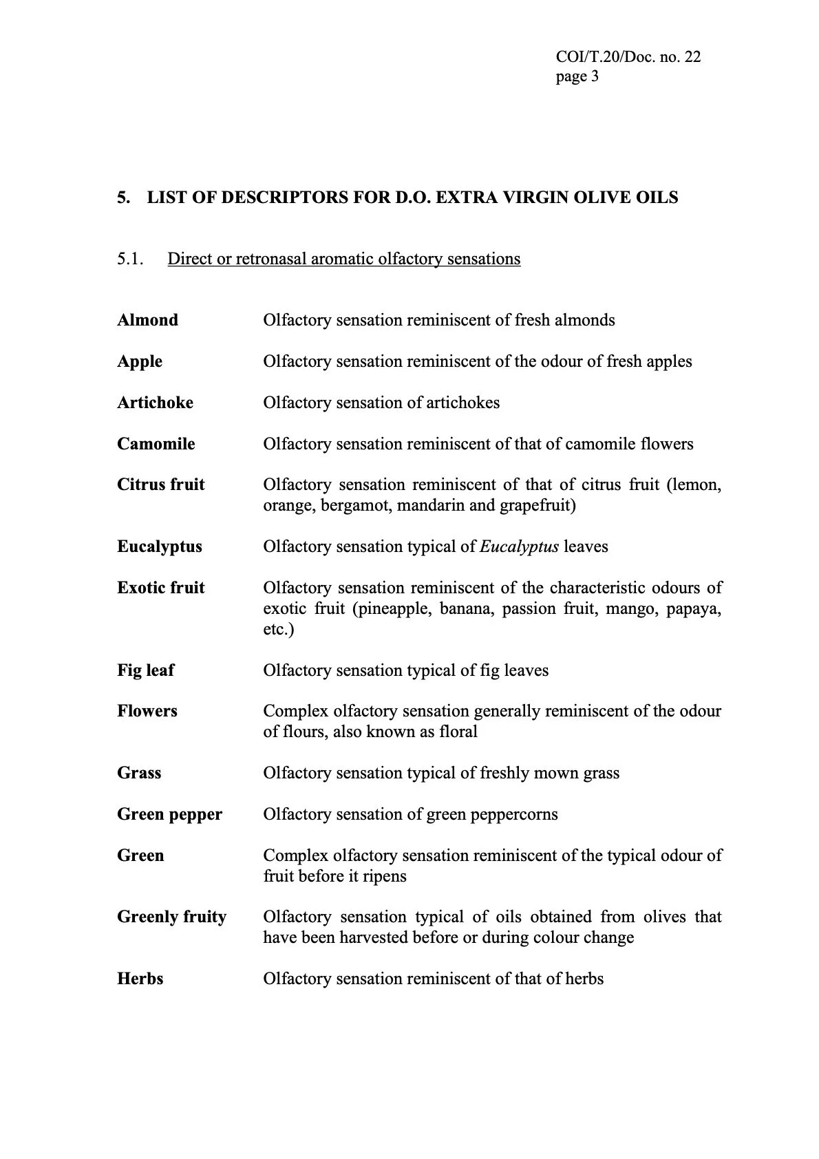I will resume thoughts related to the above further down, such as in relating them to methodological stances, but first some comments on the excerpt above and images below. The excerpt presented above represents part of a resolution that specifies the internationally recognized method for evaluating extra virgin olive oils of particular designated origins; that is, for assessing such oils from clearly defined regions commonly labeled under the abbreviation of DOP. It thusly relates to regulatory and standardizing dimensions of sensory analysis of olive oils correspondingly (of) territories, and it occurs a much intriguing dimension for me to follow in making sense of the becoming of various olive oils in spatiotemporal terms. This document in its full version, among others like it, can be found at the website of the International Olive Council (link in references).